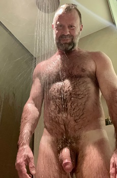 52yo, 6'0" tall (182cm), 86kg, dark blonde/greying hair, blue eyes & VERY hairy.
